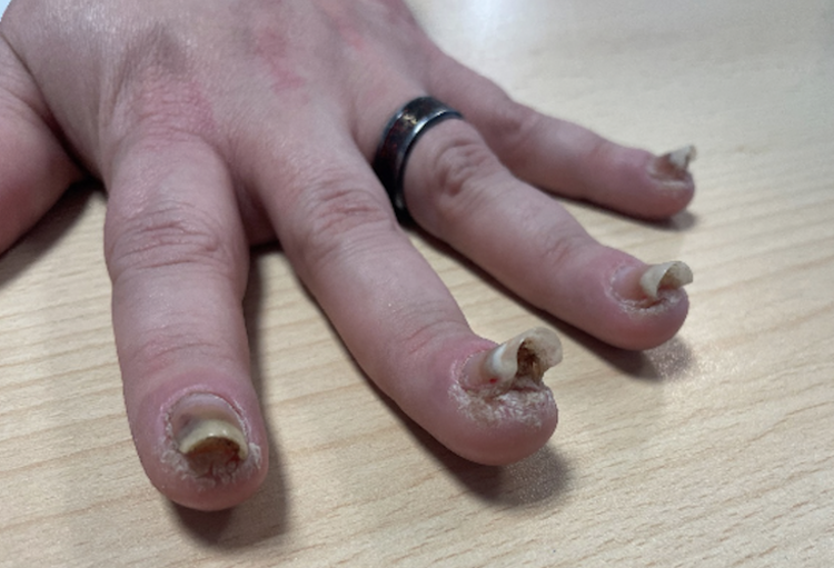 Une patiente de 42 ans a consulté pour un épaississement unguéal affectant les dix doigts, associés à une gêne esthétique et fonctionnelle. Un mois plus tôt, à la suite de la pose d’ongles en gel, elle avait présenté un prurit intense et des brûlures péri-unguéales. Les faux...